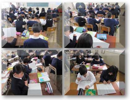 4年生の国語「わたしの『ゆめのロボット』」の学習です。子どもたちはそれぞれ『ゆめのロボット」を考えました。書いた文章を推敲し、友達同士で交換して読みあっています。