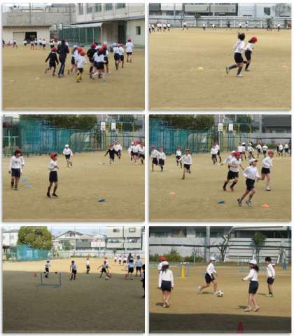 5分間走のあと、ボールを蹴る運動を行いました。