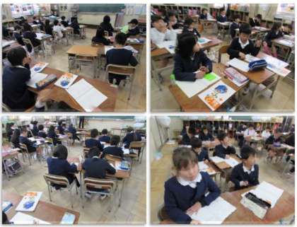 2年生の算数の学習です。「分けた大きさのあらわし方をしらべよう」で、分数で表す学習をしています。
