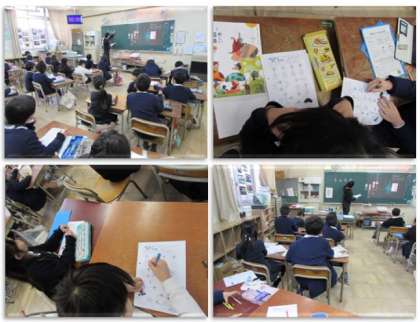 2年生の国語の学習です。プリントを使って、漢字の学習をしています。反対の意味を持つ漢字や、似た意味、仲間になる漢字を見つけていきました。