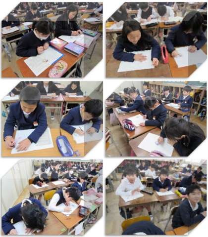 4年生の総合学習です。身の回りの出来事から、題材を選び、「作家」になって文を書いています。