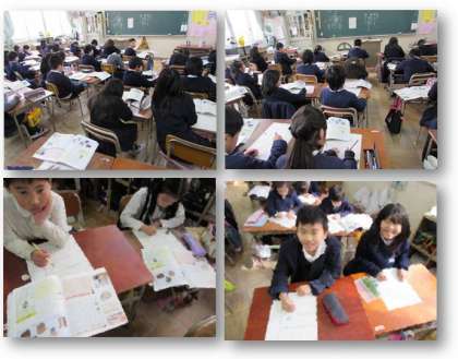3年生の社会科の学習です。先日の七輪体験のことを、新聞に書いています。七輪で火起こしをしたときの大変さ、火が付いた時のうれしさなどを思い出しながら、書いていきました。