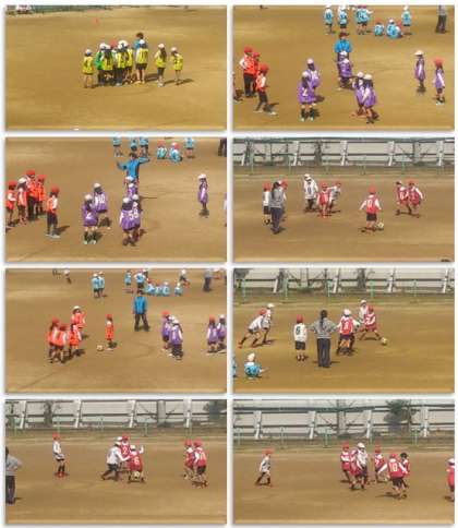 3年生の体育です。サッカー型ゲームで、試合を行っています。