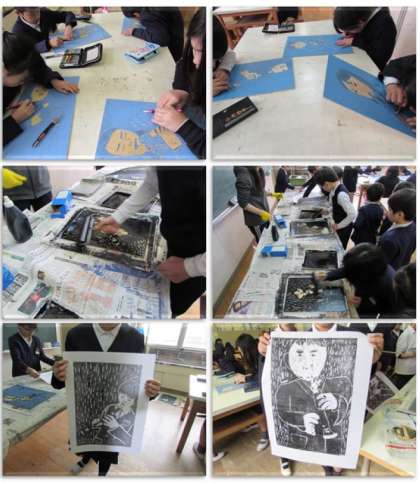 4年生の木版画です。彫り終えた子から、今日は刷っていきました。紙を持ち上げるとき、どんな出来上がりなのか、どきどきしました。