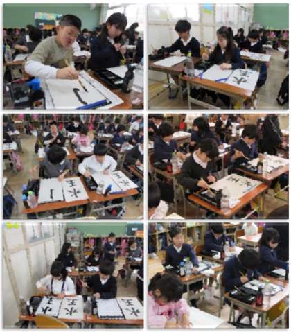 3年生の毛筆書写は、『水玉』で最終です。書写道具を持ち帰りますので、すずりや太筆を洗っておいてください。