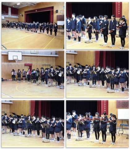 6年生からは、器楽合奏のプレゼントです。素晴らしい6年生の演奏に、1年生の子どもたちも聞き入っていました。