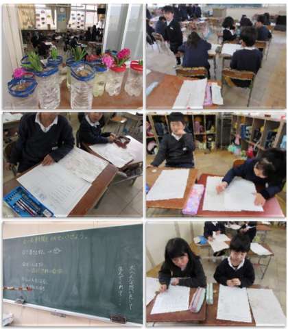 2年生の生活科の学習です。『成長新聞』を書いています。自分の生まれたころの様子や名前の由来などの、聞いた話や、思い出の品の写真などを新聞にしていきます。