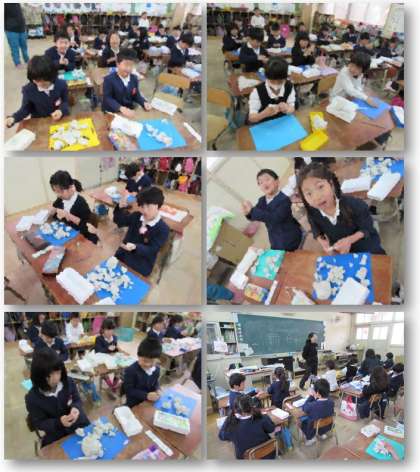 1年生の図画工作の学習です。今日は、粘土遊びです。高く高く、積み上げていきます。誰が一番高く積み上げられたでしょうか。