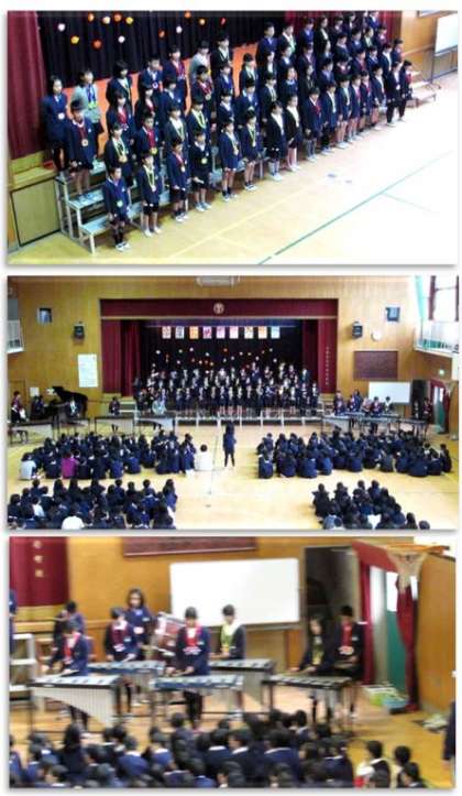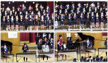 続いて、6年生からは歌と器楽のプレゼントがありました。6年生の歌声、器楽合奏は、在校生の心にいつまでも残ることでしょう。