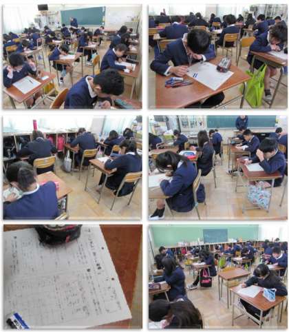 6年生の家庭科の学習です。「くふうしよう おいしい食事」のテストに取り組んでいます。