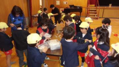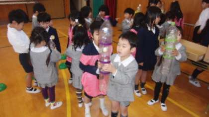 本日、岸の里幼稚園と聖化保育園から、4月に1年生になる園児たちを迎えて、「わくわく交流会」を行いました。1年間、小学校で学んだことを生かし、小学校の楽しさを伝えようと、1年生の子どもたちは張り切っていました。おもちゃ作りには、1月の初めから取り組んできました。(材料集めにご協力いただき、ほんとうにありがとうございました)