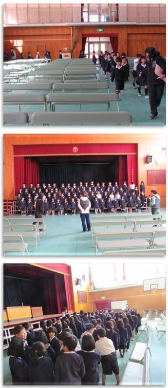 1年生の講堂での練習も始まりました。画像は、入場や退場の練習をしている場面です。