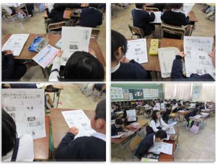 本日、「千本小学校しんぶん」を配りました。画像は、配られた新聞を読む2年生の様子です。友達の名前が載っている個所を見つけ、声をあげています。