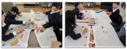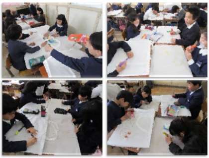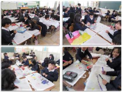 3年生が作品袋に、絵を描いたりして、自分だけの作品袋に仕上げています。今日はこの作品袋に、3年生の作品を入れて持ち帰りました。