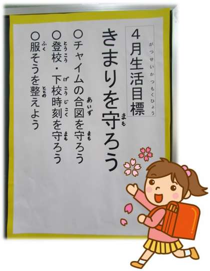 4月の生活目標は『きまりを守ろう』です。具体目標は、