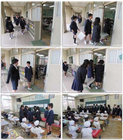 5月2日(火)までは、6年生が給食室から1年生の教室まで運んでくれます。6年生は最高学年の自覚を、1年生は感謝の気持ちをもってほしいと考えています。