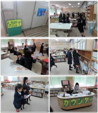 千本小学校では、毎週火曜日、図書館ボランティアの方にお越しいただき、終日、学校図書館の開放を行っています。今日の昼休みにも、たくさんの子どもたちが図書館に来ていました。