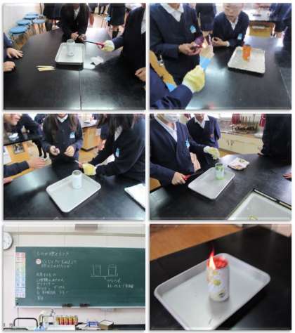 4月12日(水) 6年生の理科の学習です。「ものが燃えるとき」の条件について、実験で調べています。