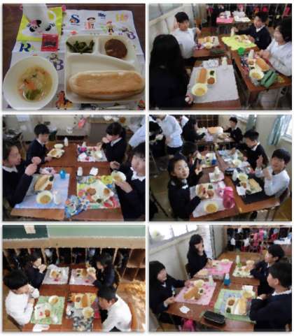 画像は、おいしく給食をいただく6年生の様子です。