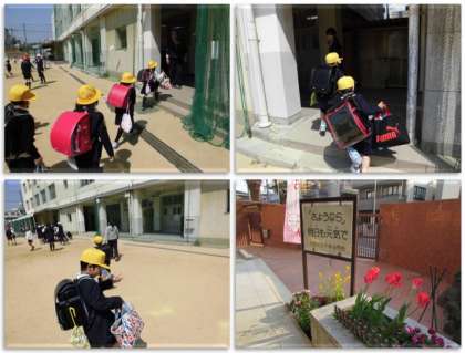 1年生が、集団下校をしています。学校生活の初めの1週間が過ぎました。初めてのことばかりで、疲れもあることと思います。週末、しっかりと休んで、また月曜日に、元気に登校できるよう、よろしくお願いいたします。