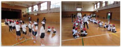 3年生の体育の学習です。集合、整列の仕方を学習しています。遠足などで校外を歩くときにも大切なことなので、しっかりと練習をしています。