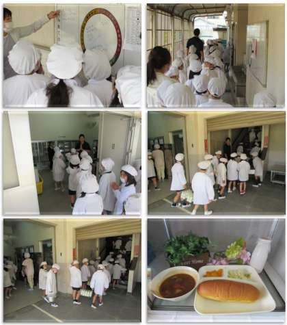 本日の給食の献立をご紹介します。本日の献立は、パンプキンパン、ビーフシチュー、キャベツのピクルス、みかんのかんづめ、牛乳でした。