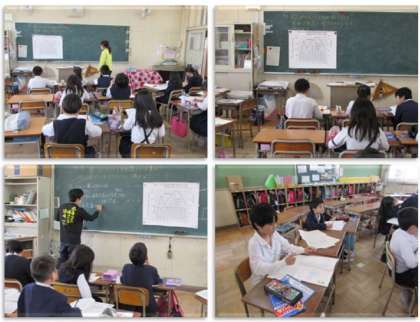 4年生の算数の学習です。棒グラフと折れ線グラフを重ね合わせたグラフを読み取る学習をしました。そして、左右の縦軸がそれぞれ何を表しているのかを考え、グラフを読み取りました。