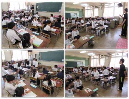 2年生の音楽の学習です。「メッセージ」で、班ごとにパートを決め、歌いました。気持ちの良い、あいさつの歌です。