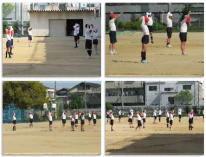 4月20日(木) 6年生の体育の様子です。初めに、しっかりとストレッチをしています。