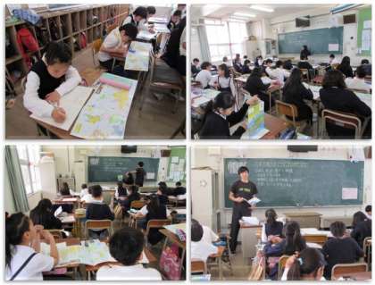5年生の社会科の学習です。地図帳で、日本の周りがどうなっているのか、調べています。どんな海洋があり、どんな国があるのか、確かめていきました。