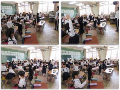 2年生の国語の学習です。初めに、皆で『たけのこ ぐん』の暗唱です。「たけのこが ぐん」「せのびして」「つちをわったよ」など、詩の言葉に合わせて、子どもたちは大きく、体を動かします。まるでひとりひとりが、若々しいたけのこになったかのようです。