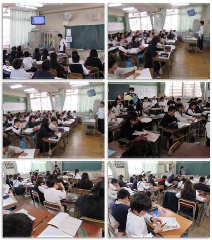 6年生の算数の学習です。デジタル教科書を使って、線対称な図形と、そうでない図形に分けられることを確認しました。その後、「線対称でない図形」を切り取り、その図形の特徴(点対称)について調べていきました。