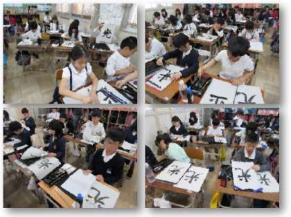 4年生の毛筆書写です。「光」と書きました。縦画や横画、点、はらいやはねなどの書き方を思い出しながら、書いていきました。