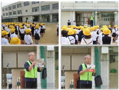 最後に、生活指導担当の先生から、生活のめあての話です。今月のめあては「安全なくらしをしよう」、今週のめあては「廊下・階段を走らないようにしよう」です。