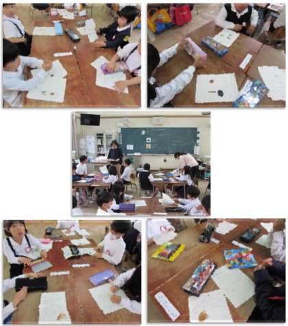 1年生の生活科の学習です。1年生は学習園でマリーゴールドやホウセンカなど、様々な花を育てます。観察をして、花によって種の形が違うことに気づきました。