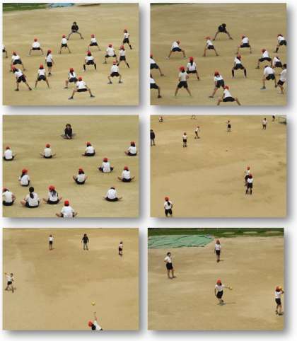 5月1日(月) 5年生の体育の学習です。しっかり準備運動をした後、今日はキャッチボールをしました。