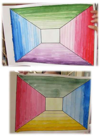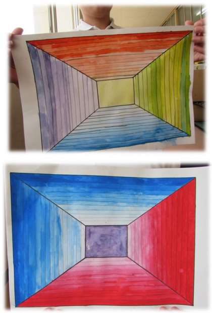 6年生の図画工作です。絵の具の濃さを変えていくことで、遠近感を表しました。
