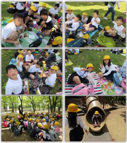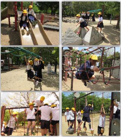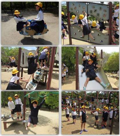 お弁当を食べた後、遊具のある場所へ行き、皆で遊びました。たくさんの遊具で、楽しく、遊ぶことができました。