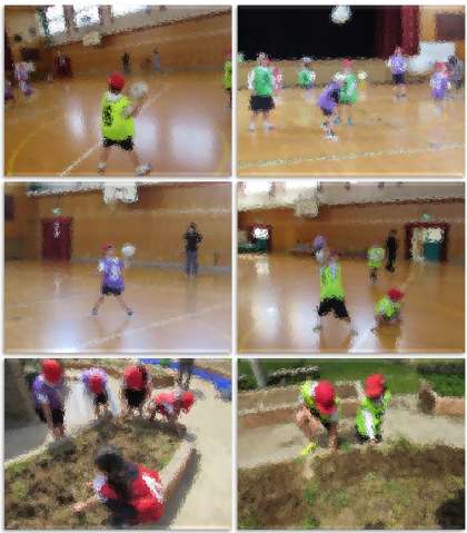 今日のわかばタイムは、初めに体育館で活動しました。今日はみんな遊びで、ドッジボールをしました。