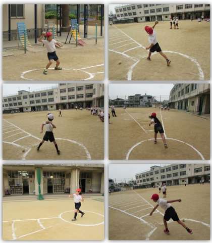 3時間目は4年生の計測です。1回目、思い通りに投げられなかった子に「向こうに見える○○さんに渡すつもりで投げてごらんなさい」などと助言すると、2回目にはまっすぐ前に投げられるようになっていました。