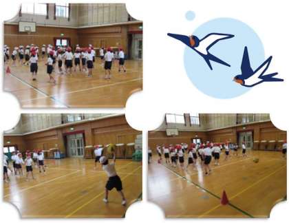 5月9日(火) 2年生の体育の様子です。体育館で、ドッジボールをしています。