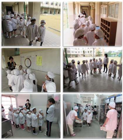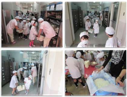 1年生も、昨日から自分たちで給食を運んでいます。給食室から教室まで、しっかりと食缶、食器かご、牛乳かご、ご飯の容器を持って、真剣な表情で運んでいます。
