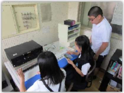 給食の後、保健委員会が『ぶくぶくうがいをしよう』の曲を流します。今日も当番の子どもたちが、放送室から音楽を流しています。この曲が流れると、子どもたちは給食の後のぶくぶくうがいをします。