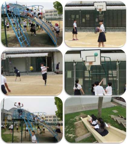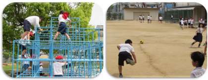 休み時間になりました。子どもたちが運動場で元気に遊んでいます。