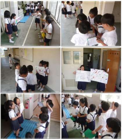 初めと終わりの挨拶をし、リーダーは腕時計をはめて時間をチェックし、各ポイントではその場所の説明をしました。2年生の子どもたちが、ずいぶん大きく見えました。