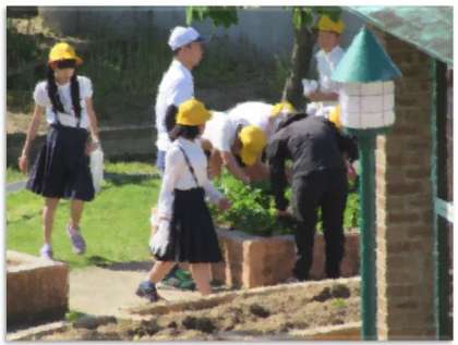 飼育栽培委員会は、学習園に行き、育てている作物を収穫しました(画像下)。