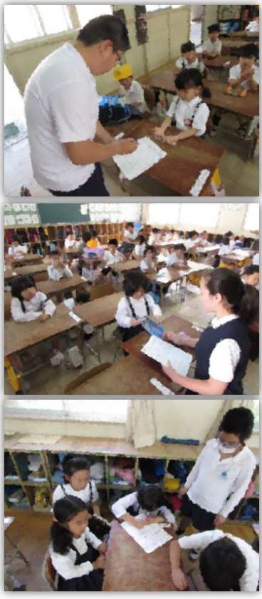 清潔検査では、ハンカチ・ティッシュがあるか、爪が短く切られているか、を確かめます。爪は、指を伸ばしててのひらを見た時、指の後ろに爪の先が見えないぐらいにしてください。