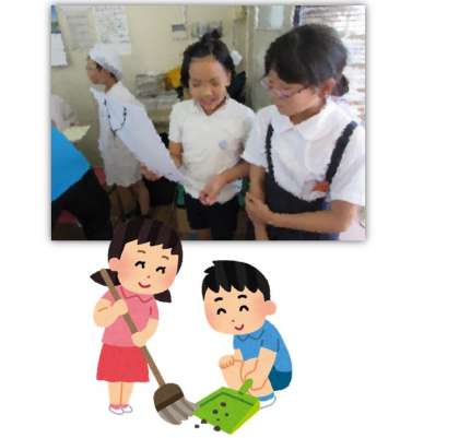 美化委員会の仕事の一つに、清掃点検があります。各学級の清掃場所を回り、清掃ができているかどうか、点検します。清掃の様子を採点されるので、子どもたちも美化委員の報告をどきどきしながら聞いています。