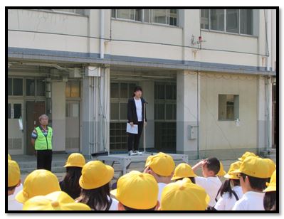 続いて、生活指導担当の先生から、生活のめあての話です。今週のめあては『教室では静かにすごそう』です。