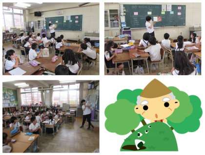 2年生の教室では、先生が本の読み聞かせをしてくれています。今日の本は、「おむすびころりん」の英語バージョンです。子どもたちも、お話に聞き入っていますね。